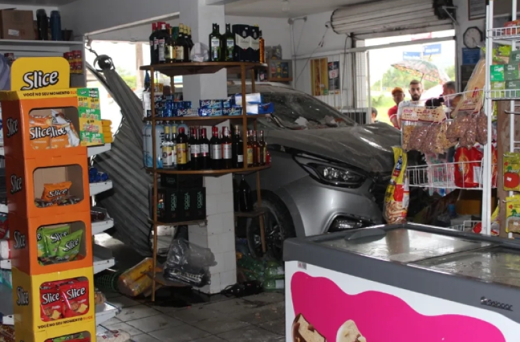 Um carro atingiu a parede de um mercado e invadiu o estabelecimento em Itajaí, no Litoral Norte, na tarde de domingo (5). A motorista do veículo sofreu ferimentos leves e precisou ser encaminhada a um hospital da região.