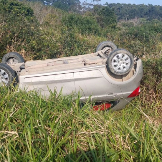 Segundo o condutor de um Ford KA, ao fazer uma curva na estrada geral da Praia do Sol, perdeu o controle do veículo, saiu da pista e capotou.