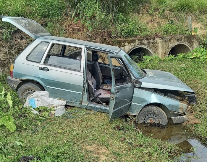 A ocorrência envolveu um Fiat Uno, com placas de Tubarão, que saiu da pista e caiu de uma altura aproximada de três metros.