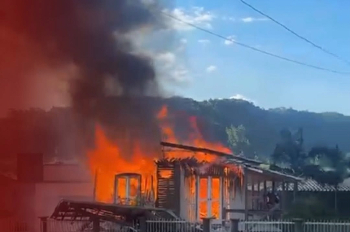 Uma casa localizada no bairro São Gabriel, em Treze de Maio, foi totalmente destruída por um incêndio no fim da tarde desta terça-feira (27). A residência era mista, com a maior parte de madeira.
