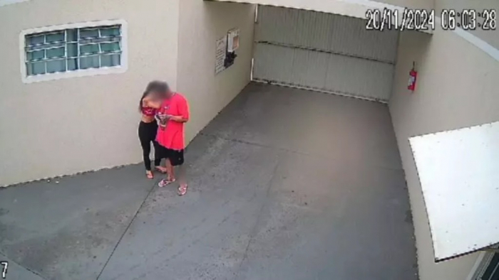 Nas imagens, os jovens aparecem do lado de fora do quarto, como quem aguarda o melhor momento para agir. Em um movimento sincronizado, a mulher escala o portão primeiro, seguida pelo homem, que demonstra habilidade similar.
