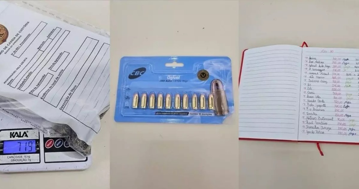 No dia 13 de fevereiro, a Polícia Civil cumpriu um mandado de busca e apreensão na casa em que o suspeito vivia com a jovem estudante. No quarto do casal, foram localizadas munições calibre .380, acessórios para fracionamento de drogas, mais de um quilo de maconha, além de um caderno universitário com anotações do tráfico com “grafia feminina”.