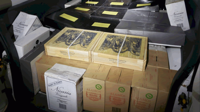 Desse modo, as guarnições do Posto 13 da PMRv, em Lebon Régis, Tático Ostensivo Rodoviário (TOR) e Receita Federal deram ordem de parada aos veículos, e após a busca veicular, foram localizadas aproximadamente 170 caixas de vinho de origem argentina, sem os devidos desembaraços aduaneiros.