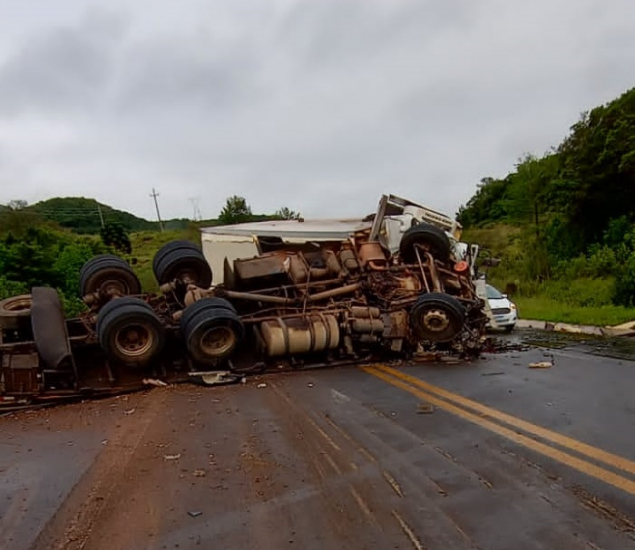 Reprodução redes sociais Dois caminhões de grande porte colidiram frontalmente e o acidente deixou dois mortos na manhã desta sexta-feira, 8, na BR-282 em São José do Cerrito, na Serra Catarinense. Um dos caminhões é de uma empresa de Orleans.