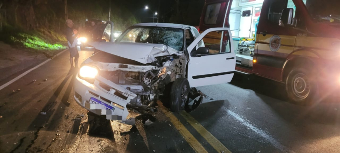 A colisão entre um automóvel Fiat Palio e uma motocicleta Honda CG Titan resultou em três vítimas. O carro era conduzido por um homem que apresentava ferimento na face e corte lacerante no braço esquerdo, sem mais lesões.