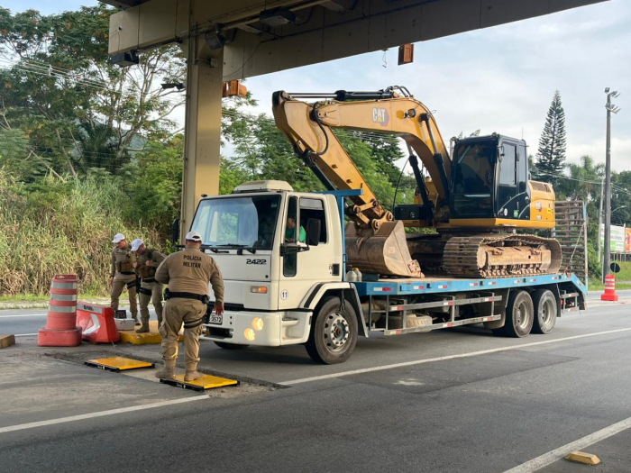 Durante a ação também foi flagrado um caminhão truque que transportava uma escavadeira hidráulica com mais de cinco toneladas de excesso de peso. Por ser uma carga indivisível, foi necessário realizar o transbordo da máquina para um caminhão compatível com a carga.