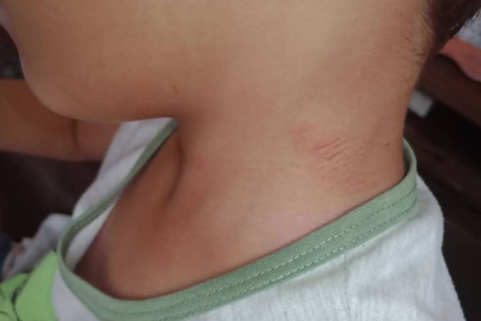 A criança tinha uma mancha roxa no queixo, compatível com agressão física.