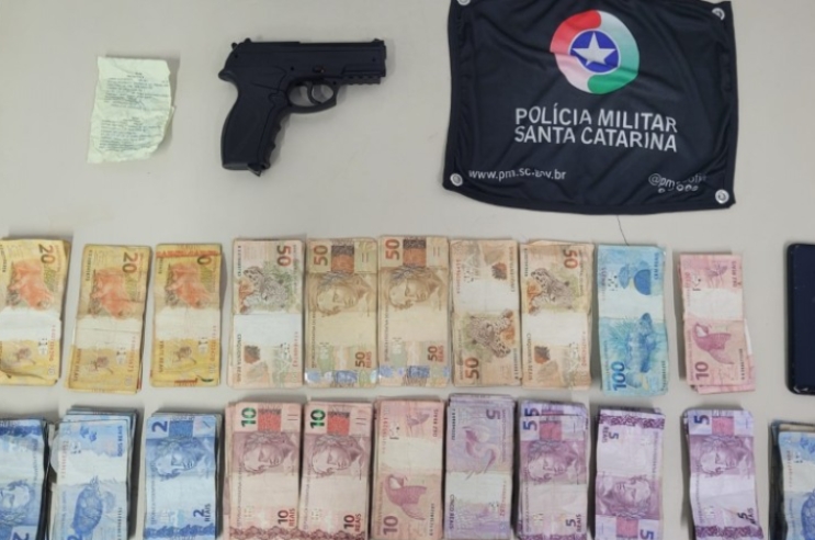 Os policiais conseguiram R$ 2.376,00 em dinheiro e uma réplica de arma de fogo (simulacro) utilizada no crime, além de uma nota fiscal da farmácia. O homem responderá pelos crimes de roubo e sequestro relâmpago.