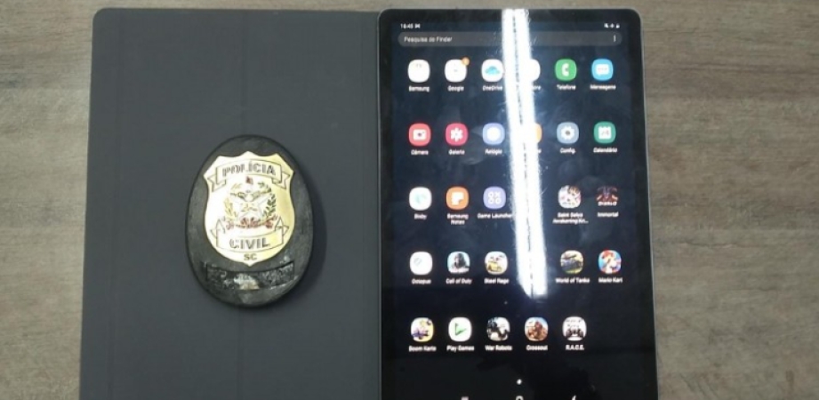 Um tablet da marca Samsung, patrimônio do Corpo de Bombeiros de Santa Catarina, foi recuperado em cumprimento de mandado de busca e apreensão pela Delegacia do Balneário Rincão. A diligência foi realizada na tarde desta terça-feira, dia 24, em dois endereços de Criciúma: a casa do suposto receptador e em uma loja de venda de aparelhos celulares.