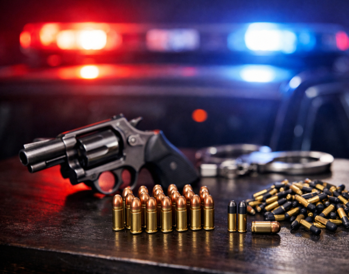 Questionado novamente, o suspeito informou que havia mais munições em sua residência. No local, foram encontradas outras 41 munições calibre .22 e uma munição calibre 6.35. Como o armamento e as munições não possuíam registro, o homem recebeu voz de prisão e foi encaminhado à Delegacia de Polícia Civil para os procedimentos cabíveis.