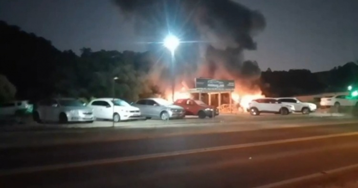 Ao chegar no local, em uma revenda de automóveis localizada na entrada do município, os socorristas constataram a ocorrêcia. Inclusive, já havia uma guarnição dos Bombeiros efetuando o combate às chamas. Em conversa com o proprietário da revenda, este apresentou algumas imagens que registraram um motociclista chegando no local por volta das 5 horas para cometer o crime.