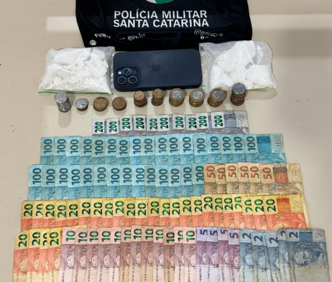 Além disso, em cima do banco do caroneiro havia um aparelho celular Iphone, o qual foi apreendido juntamente com as drogas e dinheiro. Diante dos fatos o veículo também foi apreendido e o autor encaminhado para a Central de Plantão de Polícia de Tubarão para lavratura dos procedimentos legais.