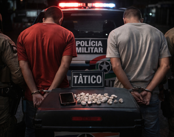 Imagem de IA Dois homens, de 31 e 33 anos, foram presos por tráfico de drogas e associação para o tráfico na noite desta sexta-feira (20), na região do bairro Aeroporto, em Tubarão. A ação foi resultado de uma operação do Tático da Polícia Militar, que monitorava a movimentação do tráfico em áreas com histórico de comércio ilícito.
