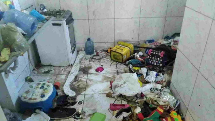 De acordo com a PM, a casa estava insalubre, com lixos e resto de comida em todos os cômodos
