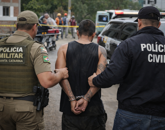 Imagem de IA Um homem de 33 anos foi preso nesta quinta-feira (19) após tentar matar o próprio pai, de 67 anos, no bairro Dehon, em Tubarão. A ocorrência mobilizou a Polícia Militar ao longo do dia e terminou com a captura do suspeito no período da tarde. A vítima foi socorrida e encaminhada ao hospital após sofrer golpes de faca.