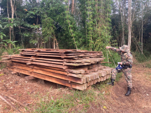 A investigação apontou o desmatamento ilegal de mais de 1.200 hectares, além do uso de estruturas ilegais como serrarias móveis, acessos clandestinos e depósitos escondidos na mata