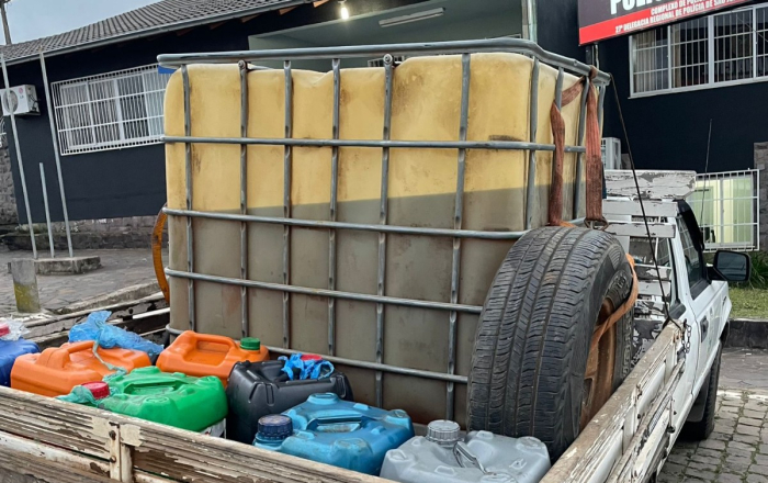 A operação integra investigação voltada à repressão de práticas criminosas relacionadas à apropriação indevida de bens públicos, com foco em desvios de combustível de veículos oficiais pertencentes ao município de São Joaquim. Durante o cumprimento da ordem judicial, foram apreendidos dois galões com aproximadamente 40 litros de óleo diesel, além de outros cinco com resquícios do mesmo combustível.