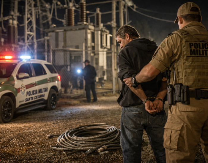 A Polícia Militar atendeu, na madrugada desta quarta-feira (25), uma ocorrência de furto em andamento na subestação da Celesc, localizada no bairro Portinho, em Laguna. O chamado foi registrado por volta das 2h30, após um vigilante identificar a presença de dois homens dentro do pátio da unidade.