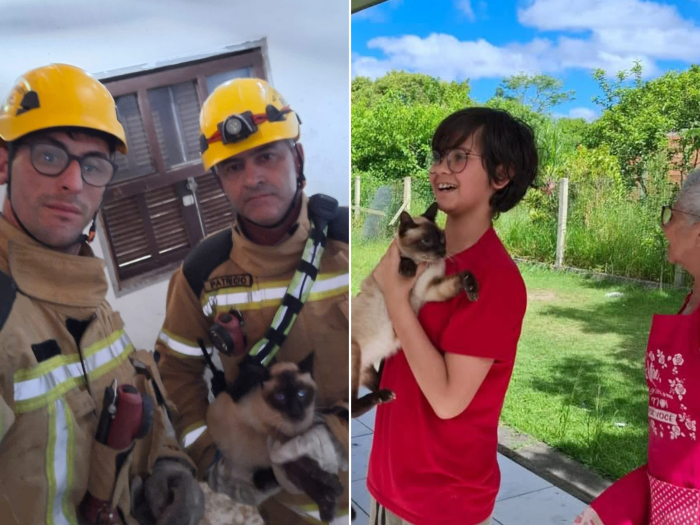Após a retirada do interior da residência, o gato foi entregue aos tutores, que ficaram aliviados. O animal não se feriu.