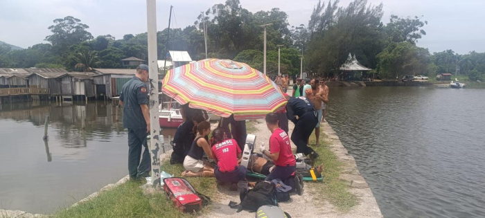 O banhista sofreu uma parada cardiorrespiratória e os bombeiros realizaram manobras de ressuscitação. O Serviço Aeromédico do Samu foi acionado.