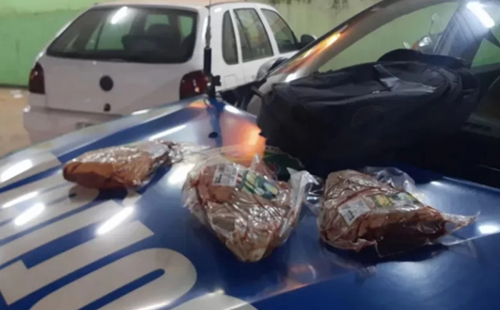 Segundo a Polícia Militar,o segurança do local, informou que estava próximo a porta de saída, quando um homem saiu visivelmente escondendo alguma coisa embaixo da camisa, ao ser abordado, jogou o pedaço de carne no chão e saiu correndo em direção a rua, sendo abordado pelo segurança.