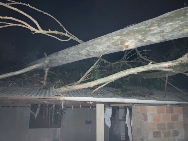 Um homem foi socorrido após uma árvore cair sobre sua casa. O fato aconteceu na noite de quinta-feira, dia 28, no bairro Ponta de Laranjeiras, em Pescaria Brava.