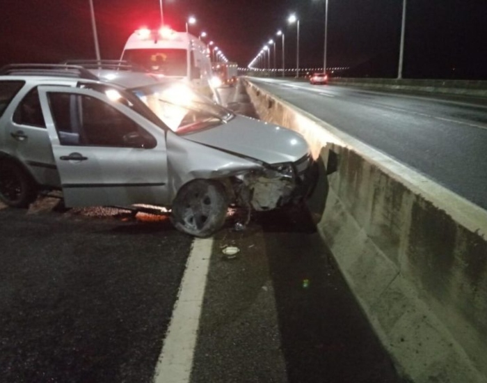 Antes da queda, a vítima colidiu seu veículo contra as muretas de proteção da rodovia