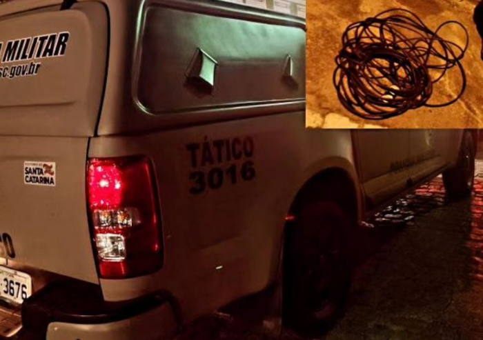 Foto: Reprodução A Polícia Militar segue tentando prender os suspeitos que furtam os fios da rede elétrica de Laguna. Na madrugada de terça-feira (2), em patrulhamento preventivo, policiais militares do 28º BPM abordaram dois homens, no bairro Magalhães.