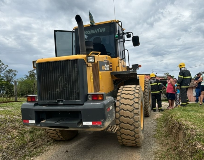 Um mulher ficou ferida após ser atropelada, no bairro Taquaruçú, em Pescaria Brava. Ele foi atingida por uma retroescavadeira nesta terça-feira (26), pela manhã.