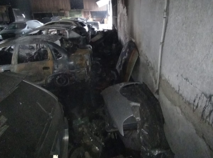 Devido à intensa quantidade de fumaça e baixa visibilidade, foi necessária a entrada forçada na edificação, com o auxílio de um funcionário da empresa. Utilizando câmeras térmicas, as equipes localizaram o foco das chamas: quatro veículos em chamas e outros materiais próximos também sendo consumidos pelo fogo.