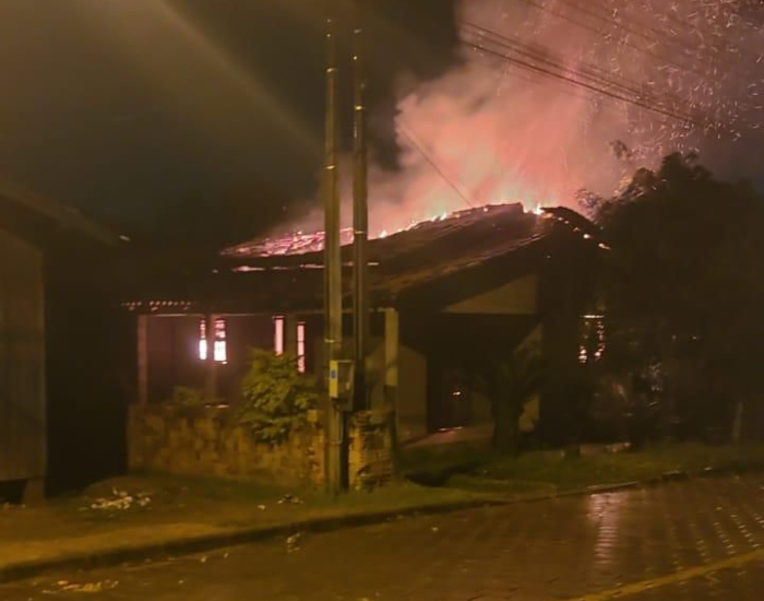 Foto: Reprodução Uma casa localizada no Morro Grande, em Sangão, mobilizou os Bombeiros Voluntários na madrugada deste domingo (14), após o local ser consumido por um incêndio.