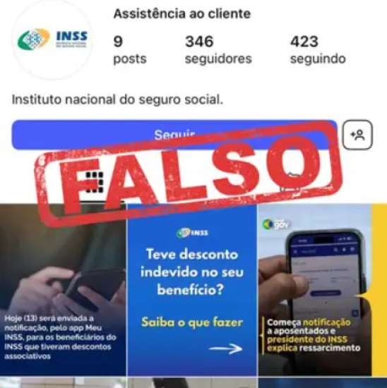 O perfil falso com o nome assistencia_inss, na rede social Instagram, usa de forma indevida o nome do Instituto Nacional do Seguro Social (INSS), a identidade visual (marca) e informações do instituto, o que pode induzir o internauta a entender por engano que aquela conta na rede social seria verdadeira. Não é! O alerta de perfil falso foi feito pelo próprio INSS, que ressalta que o uso indevido de sua marca e identidade visual é crime, passível de punição.