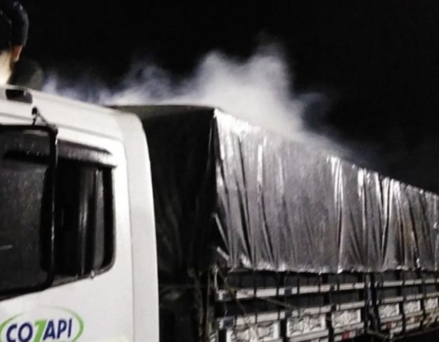 O veículo transportava sacos de cal e as chamas concentravam-se na lona que cobria a carga. O material então foi retirado pelos bombeiros e efetuado o combate das chamas com aproximadamente mil litros de água. Ninguém se feriu.