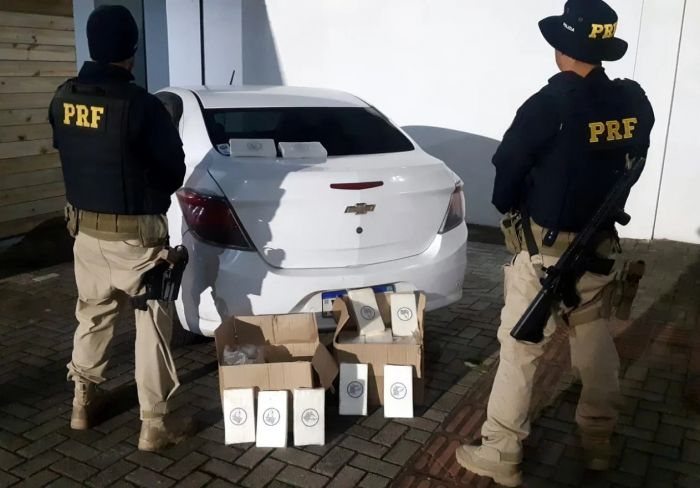Cerca de dois quilômetros adiante, os policiais conseguiram alcançar e abordar o veículo. No porta-malas, foram encontrados 47 tabletes de cocaína. O motorista foi levado à Delegacia de Polícia em Laguna para responder por tráfico de drogas.