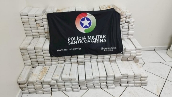 Em menos de 24 horas, a Polícia Militar de Santa Catarina (PMSC) apreendeu mais de 850 quilos de entorpecentes em duas ocorrências distintas no estado. As ações ocorreram na noite de quarta-feira (4), em Flor do Sertão, e na manhã desta quinta-feira (5), envolvendo as cidades de Biguaçu, Penha e Joinville.