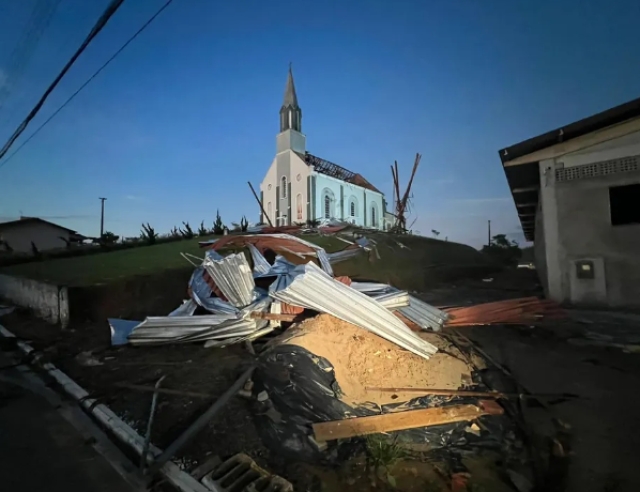 Inaugurada como capela em 1916, a igreja foi reconstruída em 1945. Além do telhado, alguns móveis no interior do prédio foram atingidos. Por conta da situação, o município estuda decretar situação de emergência.