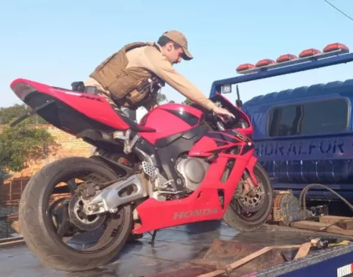 Segundo a PM, o jovem de 19 anos relatou que a motocicleta havia sido furtada dias antes e que, acompanhando o sinal do rastreador, chegou até uma área próxima a uma ponte. Ao observar o local, ele visualizou o veículo do outro lado do rio e acionou a guarnição.