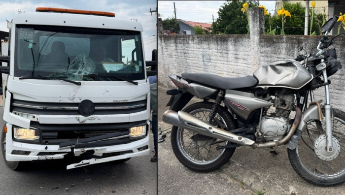 No local, rua Paulo Carneiro, os socorristas atenderam ao acidente de trânsito entre um carro e um caminhão. A informação é de que o condutor da motocicleta, foi encontrado em caído sobre a via, consciente, confuso, agitado, sinais vitais alterados e politraumatizado.