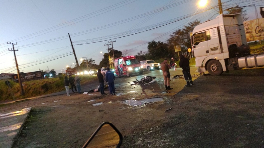 Por volta das 6h, o jovem que estava indo para o trabalho de moto, colidiu de frente contra um caminhão, com placas de São Ludgero. O jovem morreu no local. O condutor do caminhão, de 45 anos, não teve ferimentos.