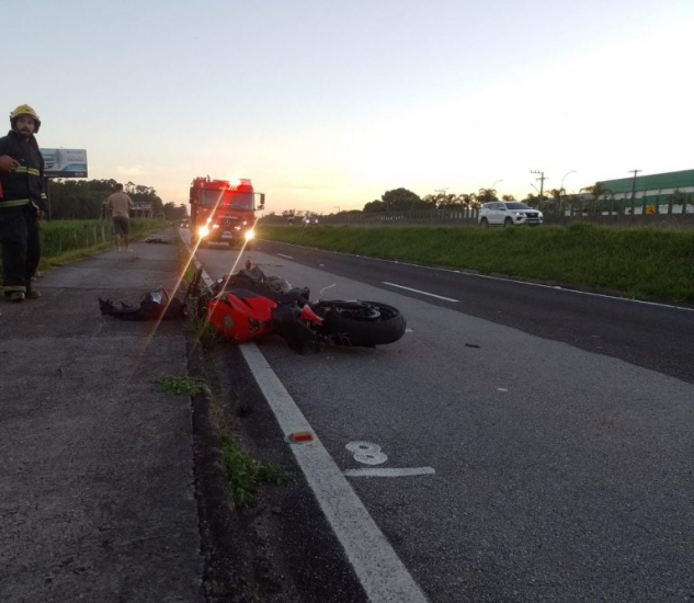 A identidade da vítima não foi divulgada. Segundo populares, a moto tem placa de Tubarão.