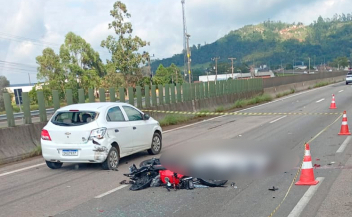 De acordo com as informações apuradas no local, o motociclista não portava documentos pessoais e ainda não foi identificado. O outro veículo envolvido na ocorrência, um Chevrolet Onix com placas de Pescaria Brava, era conduzido por um motorista que não se feriu.