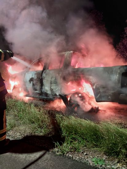 Com o impacto, o veículo foi tomado por um incêndio provocado após a colisão. O acidente foi registrado durante a madrugada.