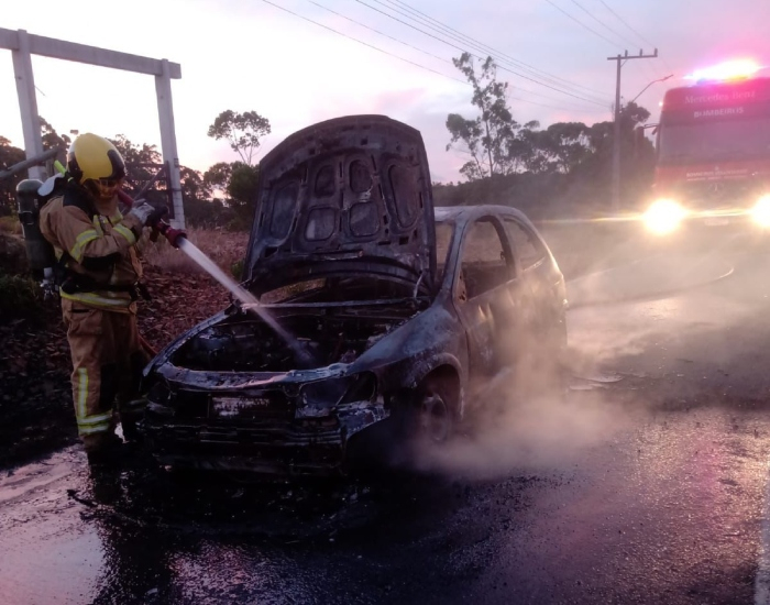 Um incêndio em veículo mobilizou os Bombeiros Voluntários na noite desta sexta-feira (15), no Balneário Campo Bom, em Jaguaruna. A guarnição foi até o local e se deparou com o veículo Chevrolet Celta com placas de Jaguaruna já tomado pelas chamas.