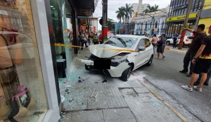 Foto: Hora Hiper Um acidente de trânsito foi registrado no final da tarde dessa quarta-feira (4), no Centro de Tubarão. Uma mulher de 70 anos, dirigia na Avenida Marcolino Martins Cabral, em direção ao bairro Oficinas, perdeu o controle do veículo e colidiu contra a fachada de uma loja.