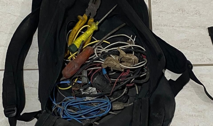Com o suspeito, os policiais apreenderam uma mochila contendo um pequena quantidade de fios e ferramentas tipicamente utilizadas na subtração de fiação elétrica