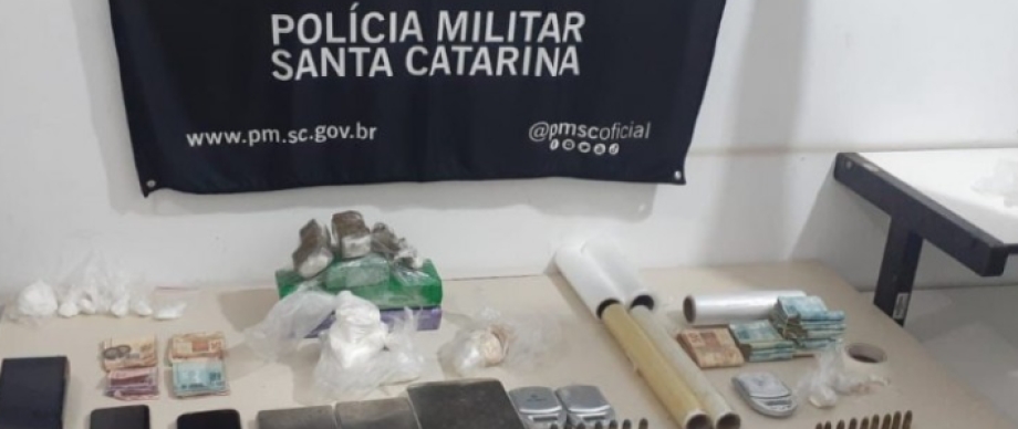 Os policiais então se deslocaram até Araranguá e realizaram buscas nas casas dos suspeitos. Na primeira, localizada no bairro Campinho, os militares encontraram mais de meio quilo de cocaína, 88 gramas de crack e 1,7 quilo de maconha, além de cinco balanças de precisão e um revólver calibre 32. No imóvel também foram apreendidas dez munições calibre 38, sete calibre 44 e 68 calibre 380.