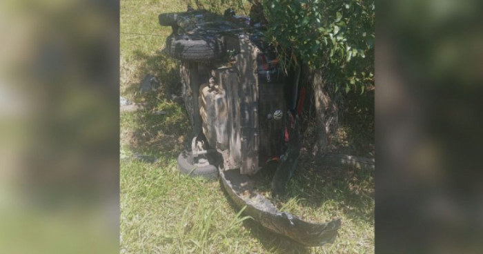 O policial constatou registro de furto e perseguiu o veículo que colidiu contra uma árvore e capotou violentamente
