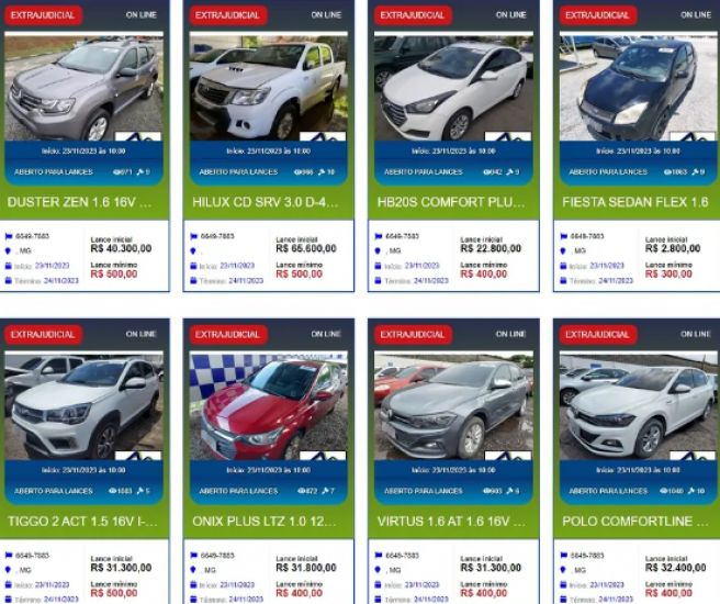 A maior parte dos veículos leiloados apareciam como disponíveis em Minas Gerais e com IPVA grátis.