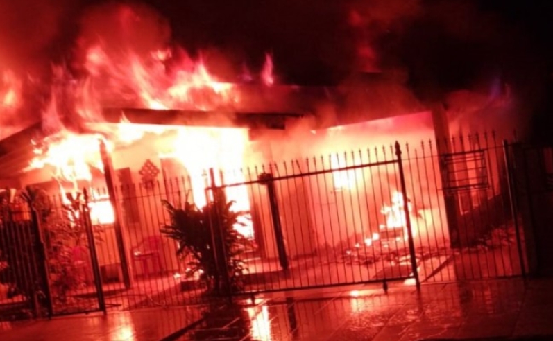 Uma residência de 100 metros quadrados foi destruída por incêndio na madrugada desta sexta-feira, dia 6, por volta de 0h45, na rua 19 de Janeiro, no bairro Nova Esperança, em Criciúma.