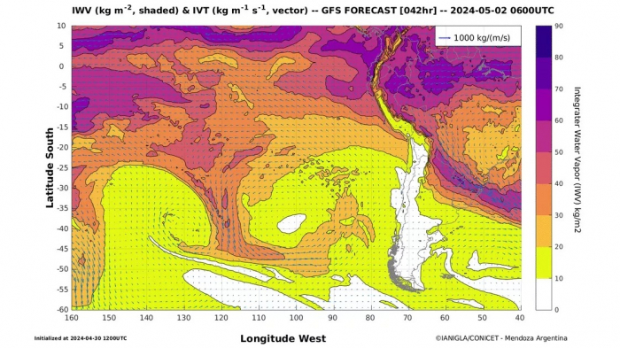 O rio atmosférico persistente que deve durar vários dias vai agravar a situação da chuva extrema no Rio Grande do Sul. Um corredor de umidade está se configurando, transportando grande quantidade de umidade da região amazônica pelo interior do continente até o território gaúcho, favorecendo precipitações excessivas a extraordinárias por dias seguidos.
